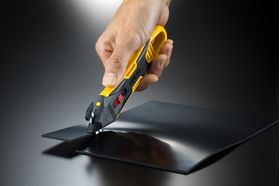 耐久性が高く、握りやすいボディ形状で、ゴムシートやカーペット、二重構造のダンボールなどの