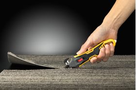 ハードな現場でも使える、刃に指が触れにくい安心設計の替刃式開梱用カッター。