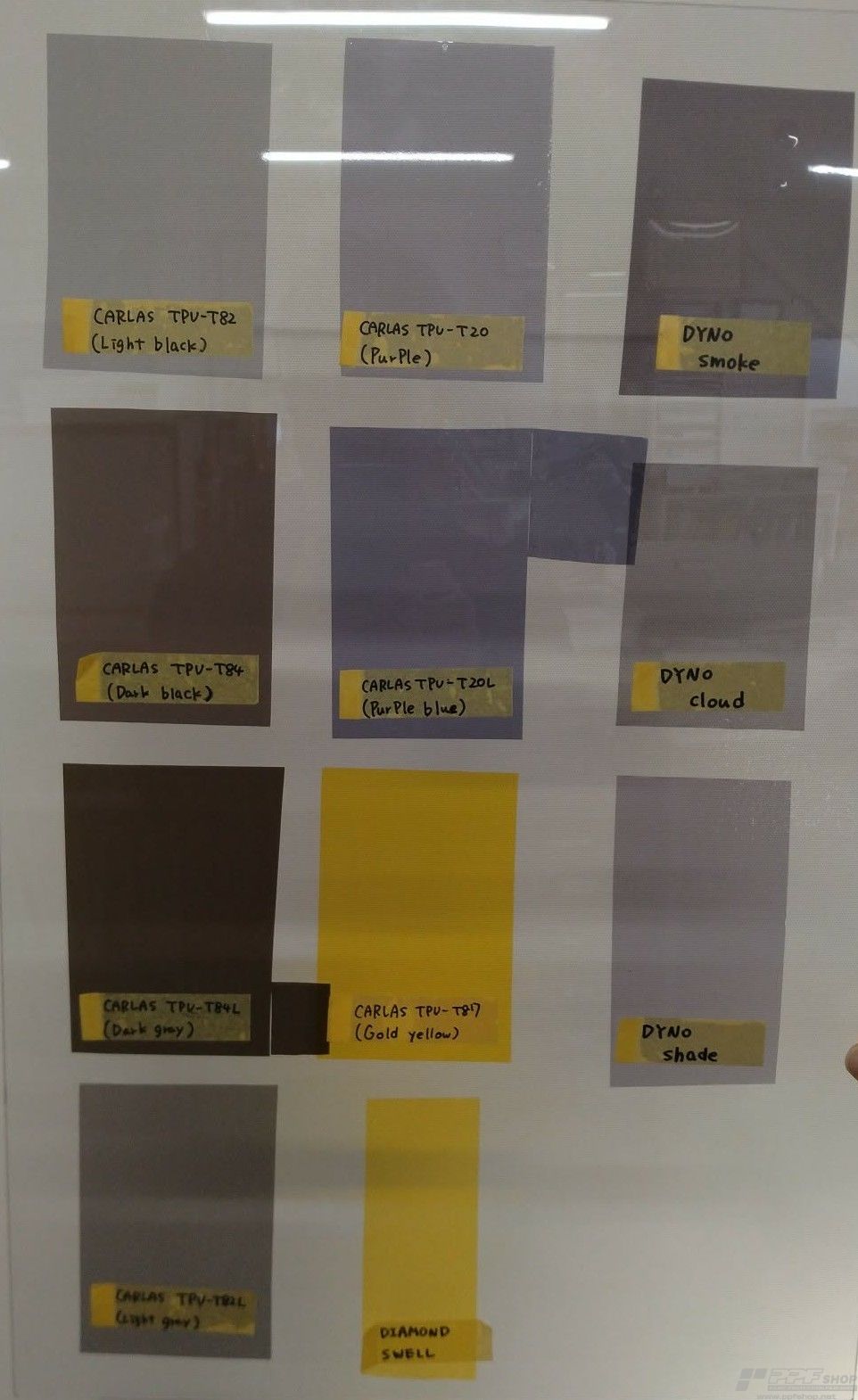 他メーカーや他のカラーのヘッドライトフィルムとの比較画像が